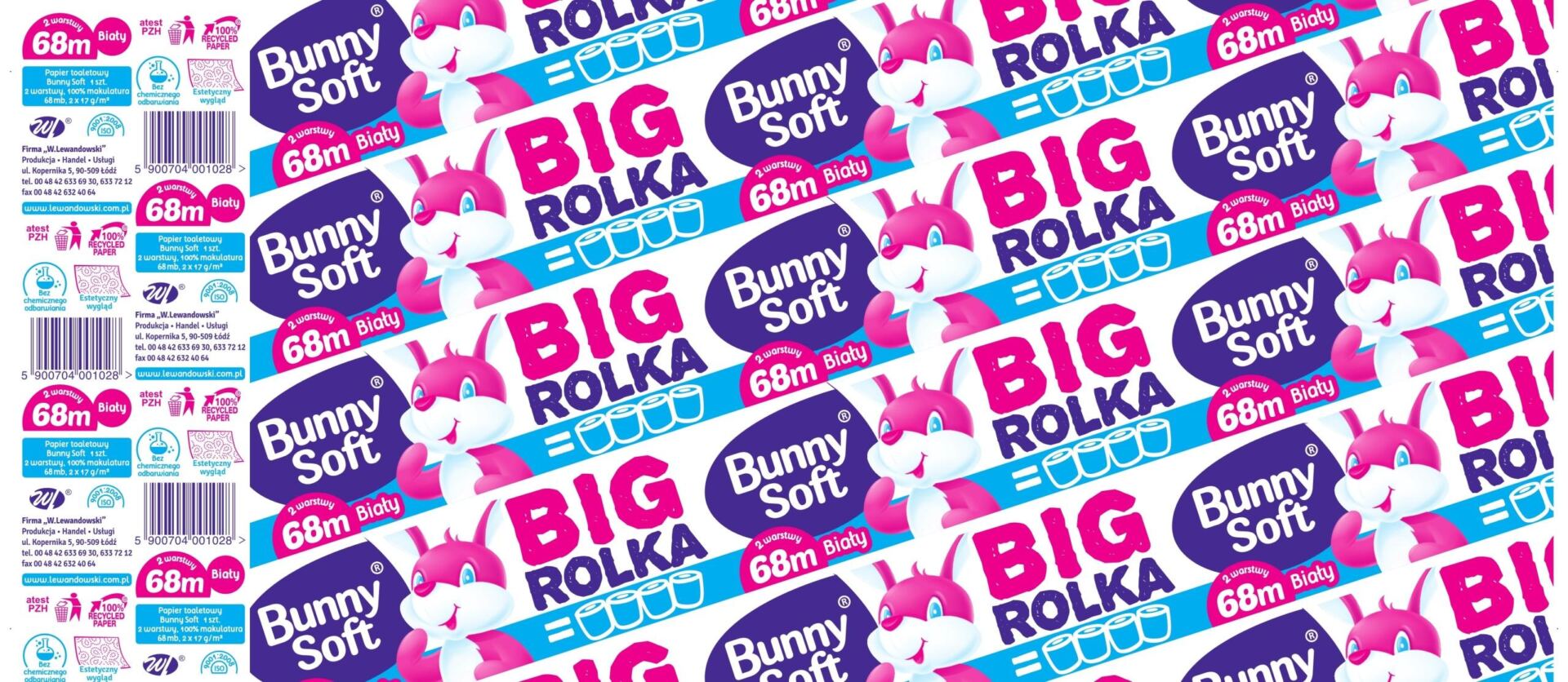 Papier toaletowy Bunny Soft BIG ROLKA 2-warstwowa makulatura, 68mb