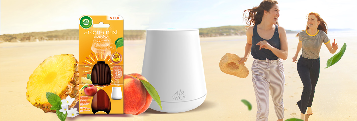 Nowy zapach od Air Wick inspirowany jest aromaterapią, która wprawia nas w dobry nastrój i daje ukojenie zmysłom. Szczęście to zapach, który w Air Wick ma postać aromatycznej mgiełki, która przyniesie tchnienie letnich spacerów do Twojego domu, wypełniając go świeżą wonią kwiatów i owoców