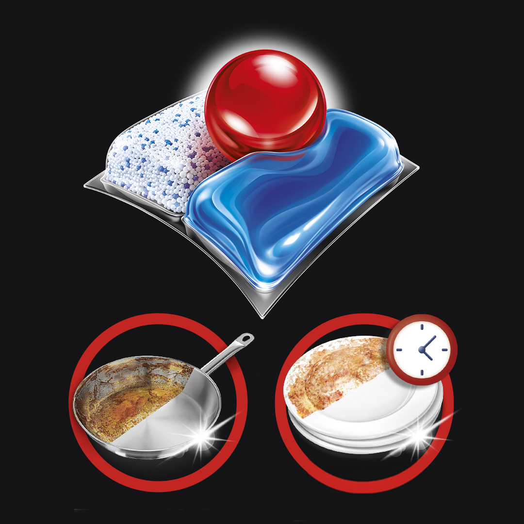 Zaawansowana formuła z ACTIVELIFT Technology skutecznie usuwa wszystkie rodzaje pozostałości jedzenia, nawet te zaschnięte przez 24h – bez wstępnego spłukiwania. Dodatkowo kapsułki zapewniają ochronę filtrów zmywarki oraz szkła i zapobiegają osadzaniu się kamienia.