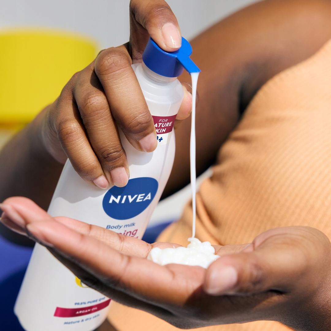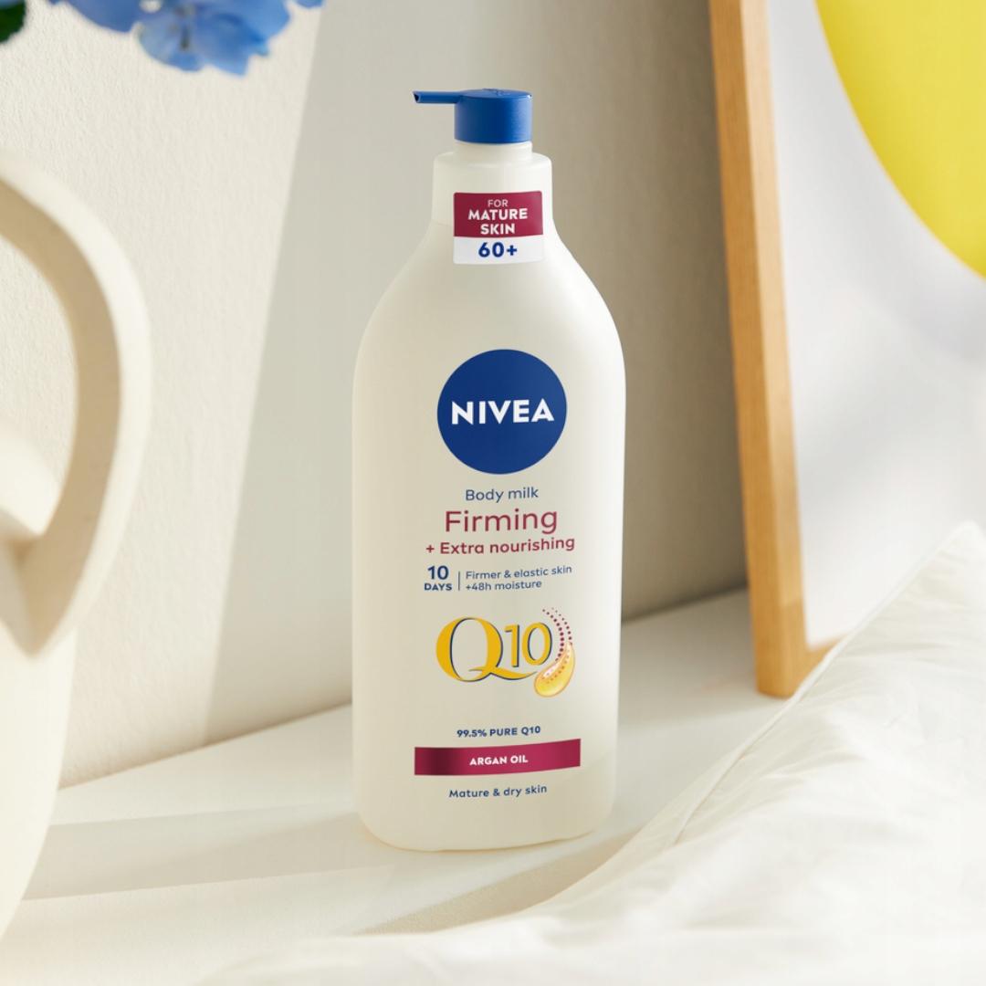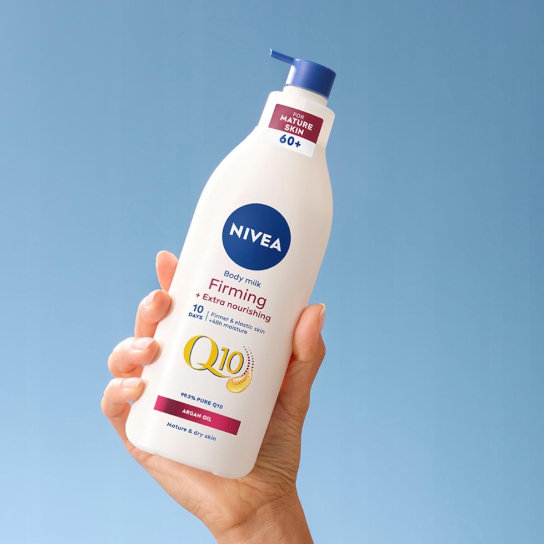 Przygotuj się na skórę pełną blasku i zdrowego wyglądu! Ujędrniający i odżywczy balsam do ciała z pompką zawiera formułę z koenzymem Q10 i organicznym olejkiem arganowym. Zauważalnie ujędrnia i poprawia elastyczność skóry już w 10 dni. Zapewnia 48-godzinne nawilżenie i przyjemny zapach. Produkt jest odpowiedni także dla suchej skóry ciała, dostarczając jej troski oraz nawilżenia. Jak uzyskać najlepszy efekt ujędrniający? Stosuj codziennie na całe ciało – po codziennym prysznicu nałóż obficie na ciało. Następnie delikatnie wmasuj mleczko w skórę, aby równomiernie rozprowadzić produkt. Tolerancja dla skóry została potwierdzona dermatologicznie. Wyjątkowa pielęgnacja od NIVEA oparta na ponad 100 latach doświadczenia w pielęgnacji skóry.