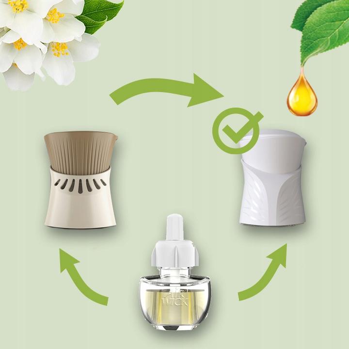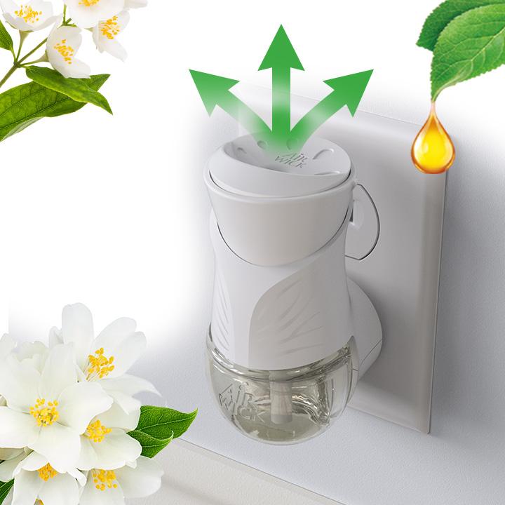 Zainspiruj się naturalnym zapachem świeżo ściętych białych kwiatów: lilii, białych róż i jaśminu (z delikatną nutą rześkiego zielonego jabłka). Elektryczny odświeżacz powietrza Air Wick skutecznie eliminuje nieprzyjemne zapachy i jest wyjątkowo trwały.