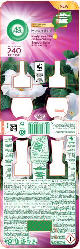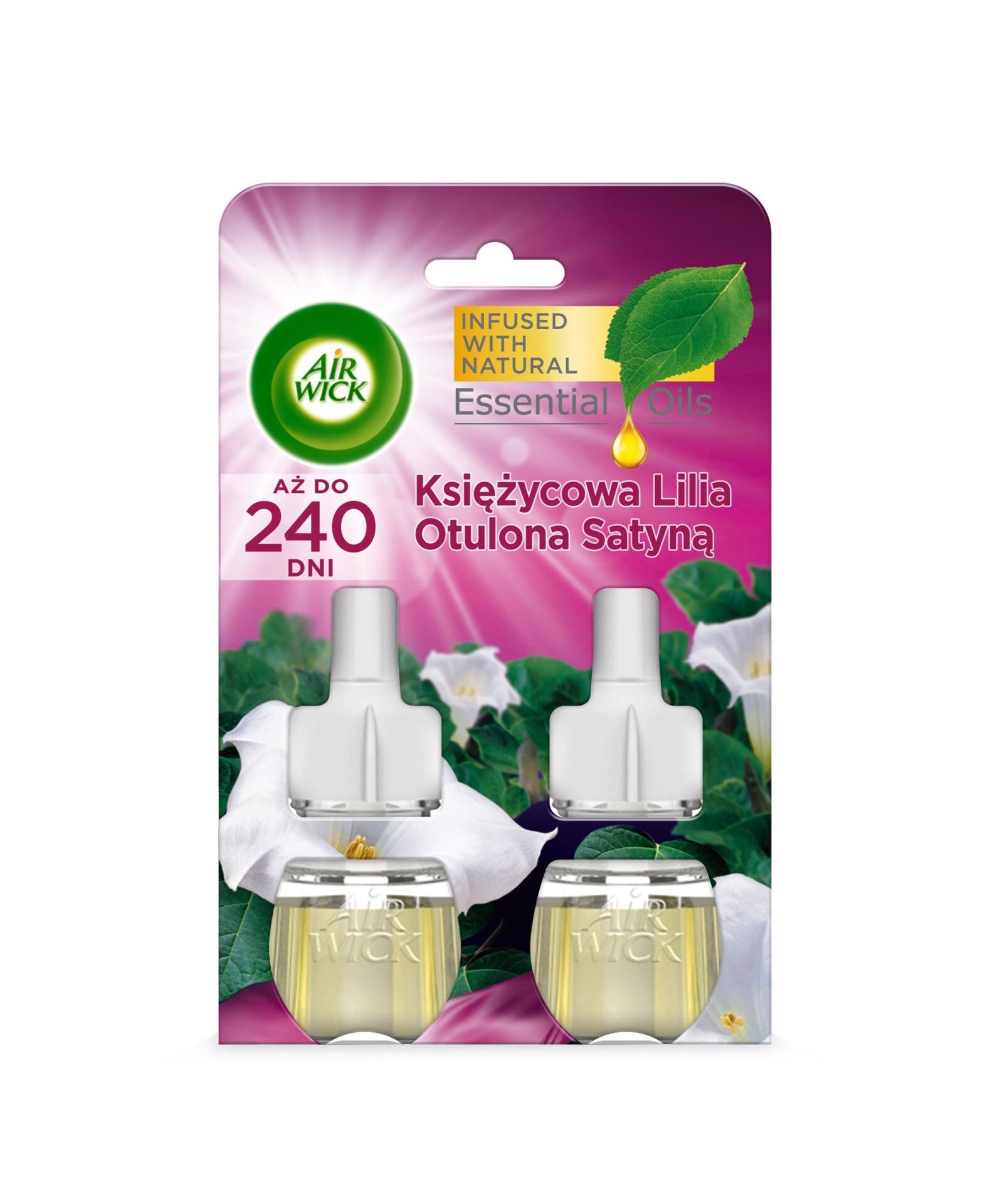 - Dwupak Air Wick Księżycowa Lilia Otulona Satyną przeniesie Cię w świat snu nocy letniej na dwa razy dłużej. Włącz, włóż wkład zapachowy z olejkami eterycznymi Air Wick Księżycowa Lilia Otulona Satyną i odpoczywaj w relaksującym zapachu, jak z bajki.