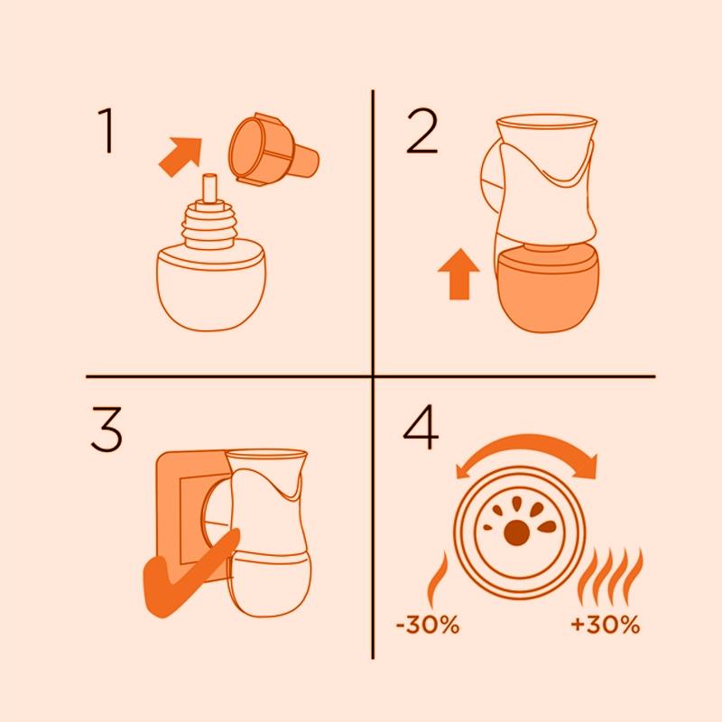 - By zmienić intensywność zapachu, przekręć tarczę na wtyczce. Największy symbol kropli to najwyższa intensywność.
