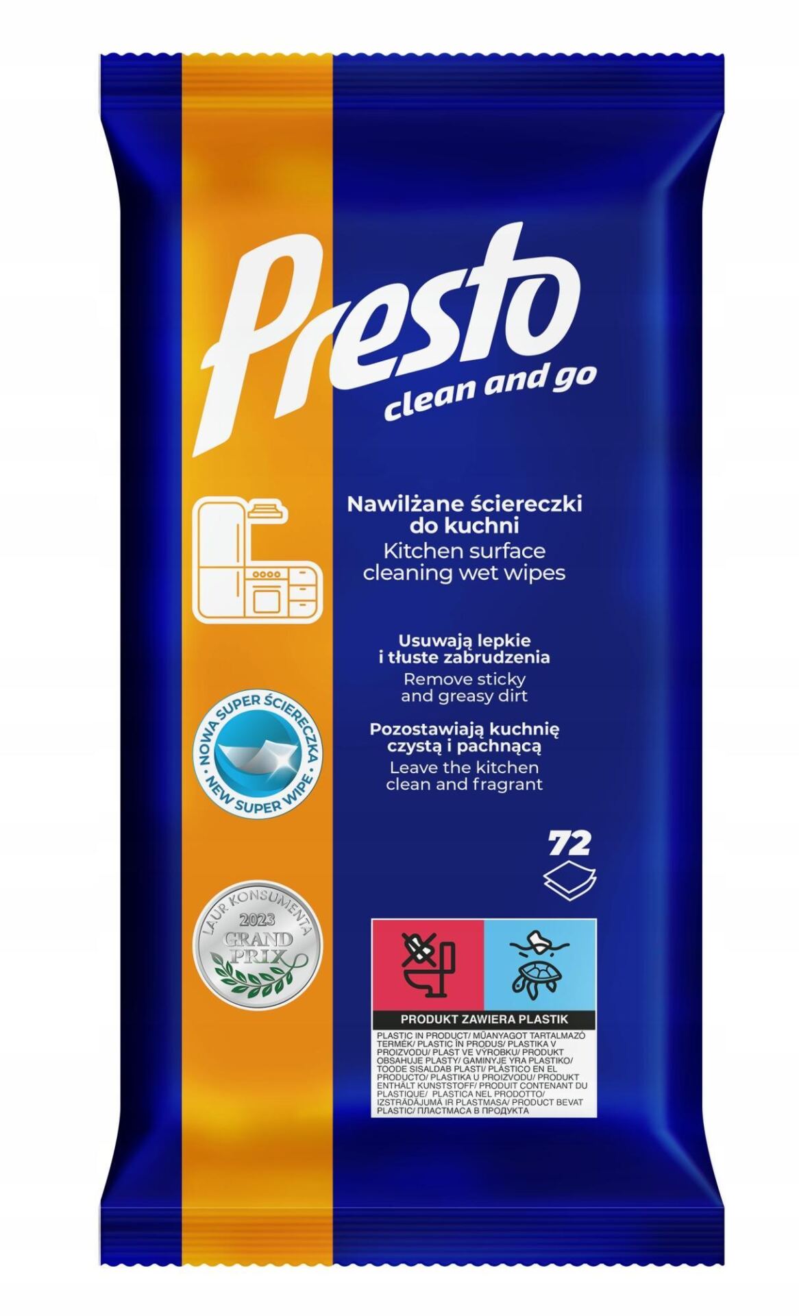 Presto Ściereczki nawilżane do kuchni 72 sztuki