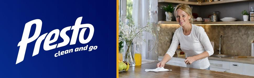 • Wszechstronne zastosowanie: Dzięki wszechstronnemu działaniu, ściereczki Presto nadają się do codziennego czyszczenia wszystkich gładkich powierzchni w gospodarstwie domowym