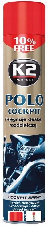 K2 POLO COCKPIT to spray do pielęgnacji i konserwacji deski rozdzielczej. Zawiera specjalne nanocząsteczki, dzięki którym w łatwy i szybki sposób zabezpieczy cały kokpit, przywróci głęboką barwę oraz wyrazistą fakturę czyszczonych elementów.