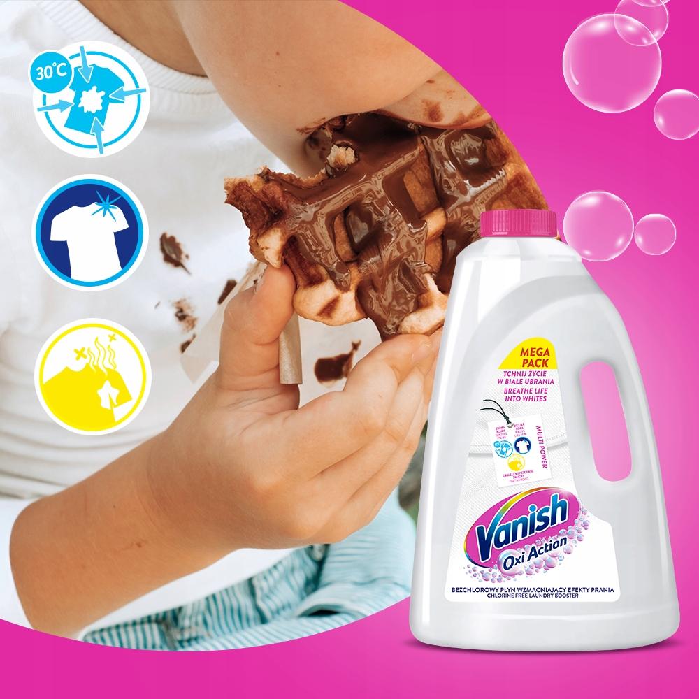Chronić przed dziećmi. Należy zawsze przestrzegać instrukcji zamieszczonych na opakowaniu Vanish. Nie stosować na wełnie, jedwabiu i skórze. Unikać bezpośredniego kontaktu z drewnem, metalem itp. Zawartość/pojemnik usuwać do odpowiednio oznakowanych kontenerów zgodnie z lokalnymi, regionalnymi, krajowymi i międzynarodowymi przepisami.