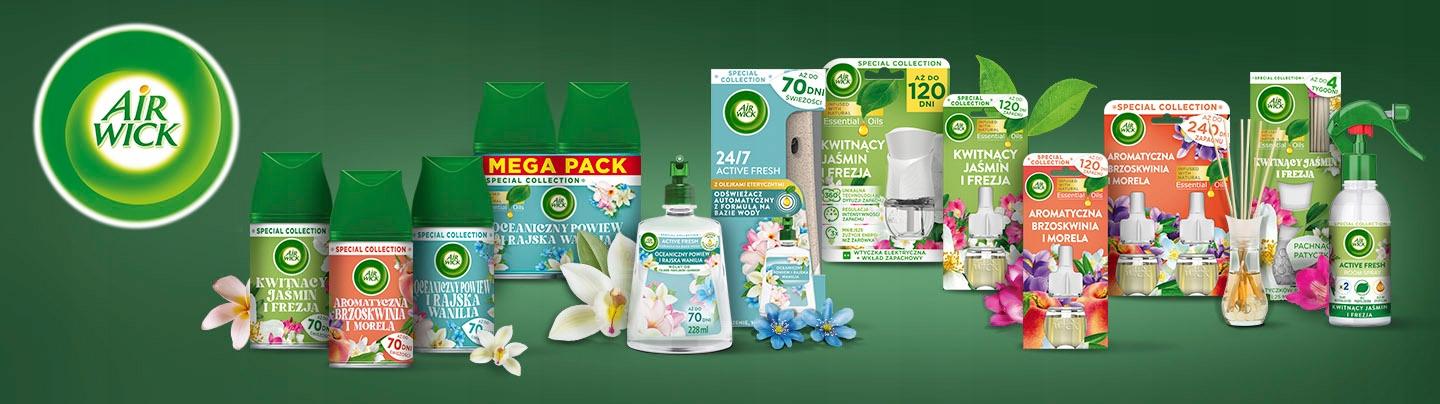 Elektryczny odświeżacz powietrza Air Wick skutecznie eliminuje nieprzyjemne zapachy i jest wyjątkowo trwały. Dzięki produktom Air Wick zawsze masz pewność, że Twój dom jest przytulny, zadbany oraz pięknie pachnie świeżością. Air Wick pozwoli Ci wyrazić siebie, natchnie pasją i pozytywną energią, a kiedy zapragniesz spokoju, przyniesie ukojenie i błogi spokój.