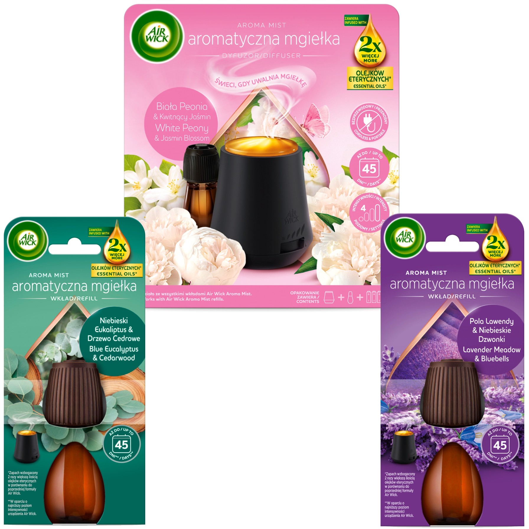 *Zapach wzbogacony 2 razy większą ilością olejków eterycznych w porównaniu do poprzedniej formuły Air Wick.