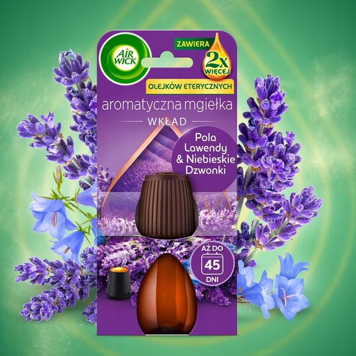 AIR WICK AROMATYCZNA MGIEŁKA O ZAPACHU POLA LAWENDY & NIEBIESKIE DZWONKI WKŁAD 20ML Z PODWOJONĄ ZAWARTOŚCIĄ OLEJKÓW ETERYCZNYCH*