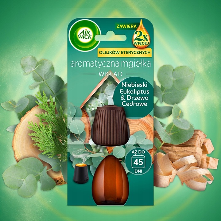 AIR WICK AROMATYCZNA MGIEŁKA O ZAPACHU NIEBIESKI EUKALIPTUS & DRZEWO CEDROWE WKŁAD 20ML Z PODWOJONĄ ZAWARTOŚCIĄ OLEJKÓW ETERYCZNYCH*