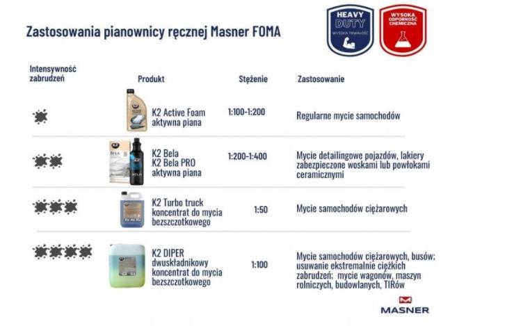 K2 MASNER FOMA RĘCZNA PIANOWNICA CIŚNIENIOWA DO MYCIA SAMOCHODU 2L M415