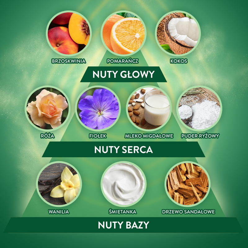 Nuty głowy: Brzoskwinia, Pomarańcz, Kokos