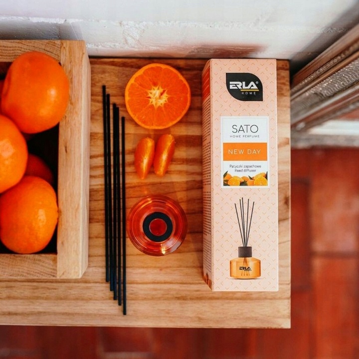 Erla Sato to stylowy odświeżacz powietrza w postaci dyfuzora zapachowego z patyczkami. Elegancki i praktyczny. Dzięki niemu w prosty sposób odświeżysz i ozdobisz każdą przestrzeń, w domu, biurze i gdziekolwiek zechcesz.Unikalne kompozycje zapachowe odmienią klimat wnętrza i wypełnią je wonią utrzymującą się nawet do 6 tygodni. Erla Sato to wyjątkowo trwałe patyczki zapachowe, których z powodzeniem użyjesz również do zamaskowania wszelkich niepożądanych zapachów.Minimalistyczny i elegancki flakonik z olejkiem zapachowym to wyjątkowo wygodne rozwiązanie. Odświeżacz z patyczkami działający na zasadzie dyfuzji, nie wymaga ciepła, ani energii. Możesz ustawić go w swoim ulubionym miejscu. Patyczki samoistnie nasączają się substancją zapachową i stopniowo ją uwalniają.