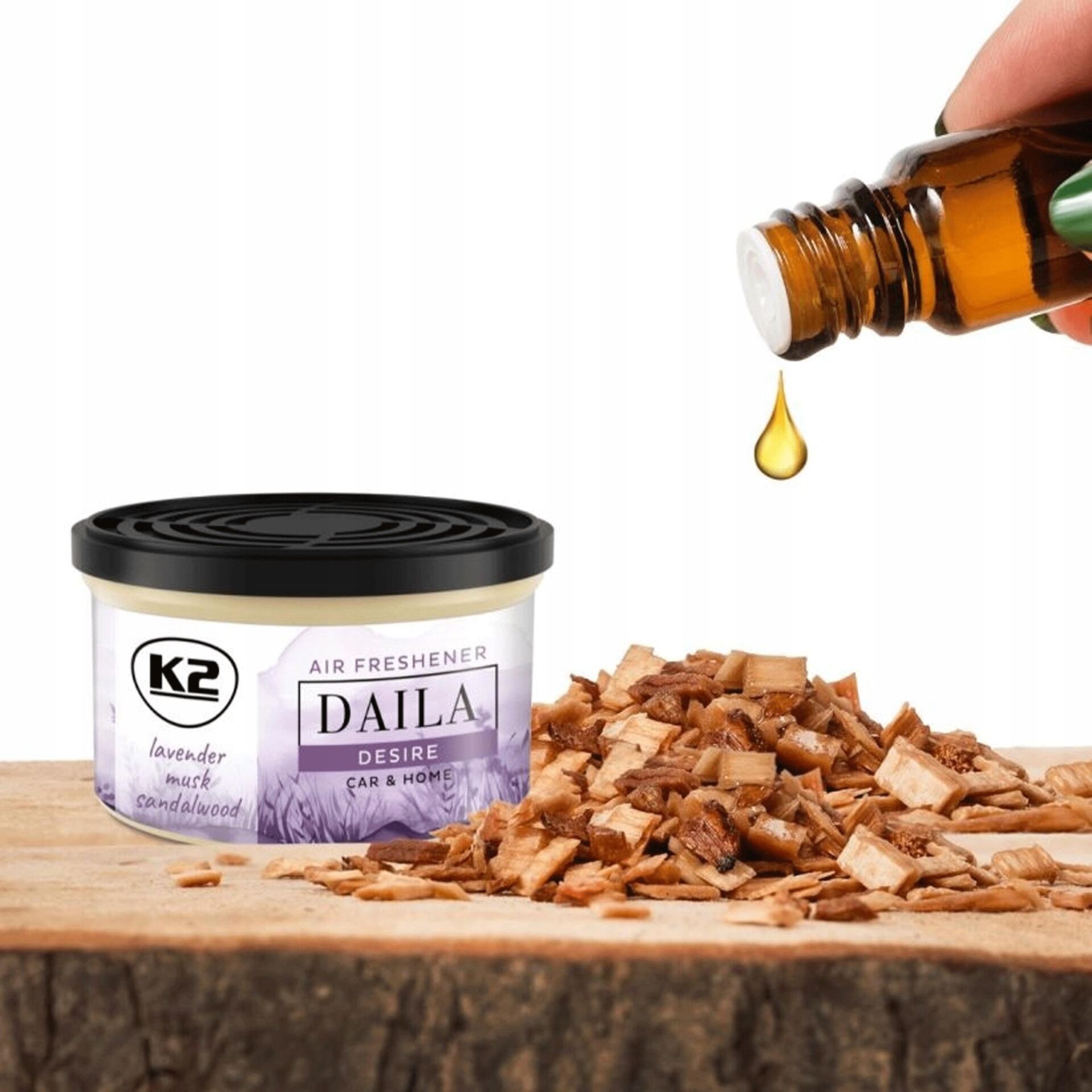 K2 Dalia to odświeżacz powietrza w puszcze z naturalnym drewnianym wsadem oraz możliwością regulacji mocy zapachu. Kojące, w pełni naturalne aromaty dostarczają świeżość, relaks i odprężenie. Aromatyczna moc natury utrzymuje się we wnętrzu nawet do kilku tygodni.
