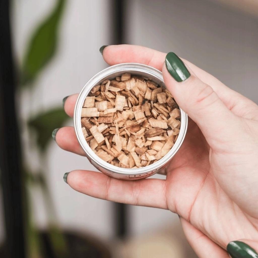 Wnętrze odświeżacza skrywa naturalne zrębki drewniane, nasączone perfumowanymi kompozycjami zapachowymi, posiadającymi w swoim składzie naturalne olejki eteryczne.