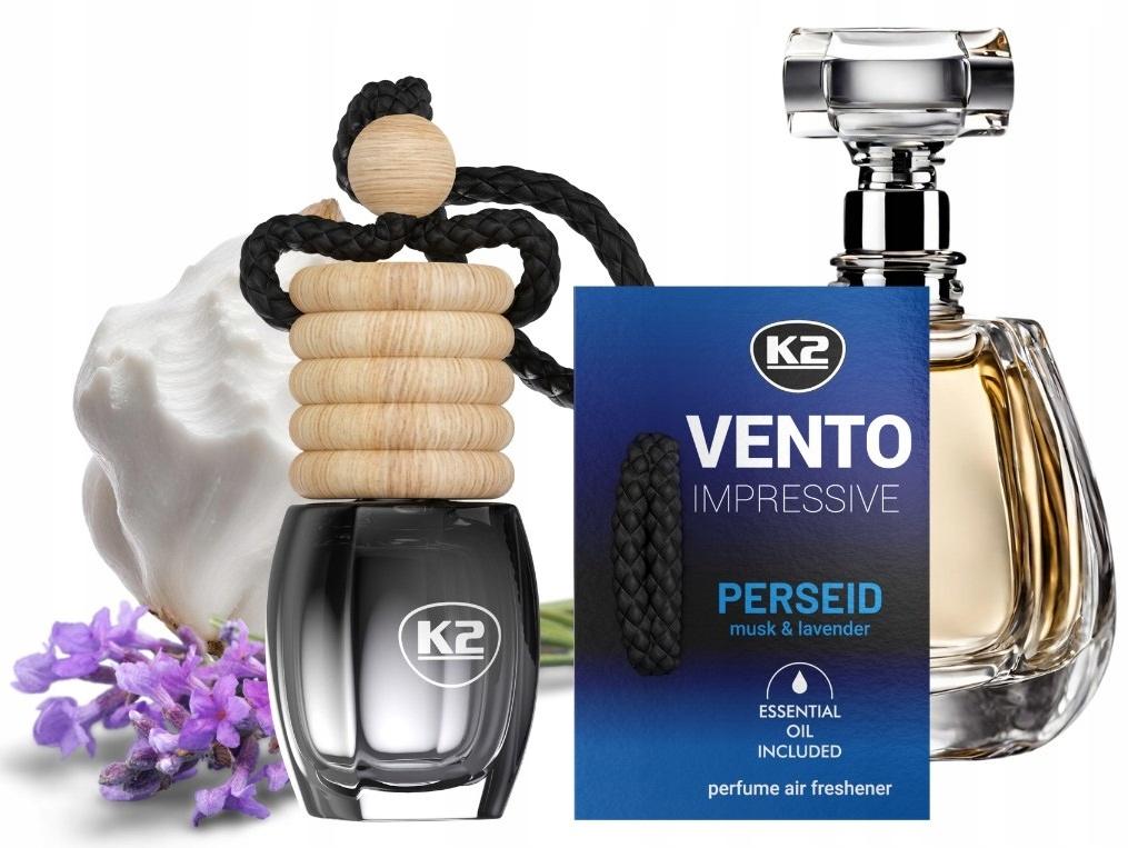 Perfumowane kompozycje zapachowe K2 Vento Impressive błyszczą zapachem niczym samochodowa biżuteria, a odświeżacz zdobi wnętrze auta.