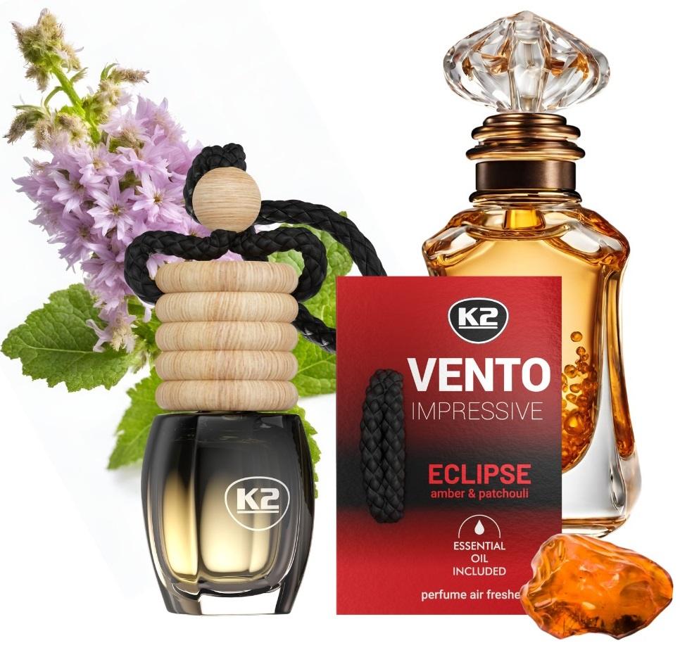 Samochodowy odświeżacz powietrza K2 Vento Impressive 8ml to uszlachetniona odsłona odświeżacza z drewnianym korkiem K2 Vento. Znane i lubiane aromaty, zostały tutaj zastąpione przez inspirowane perfumami kompozycje, bazujące na olejkach eterycznych.