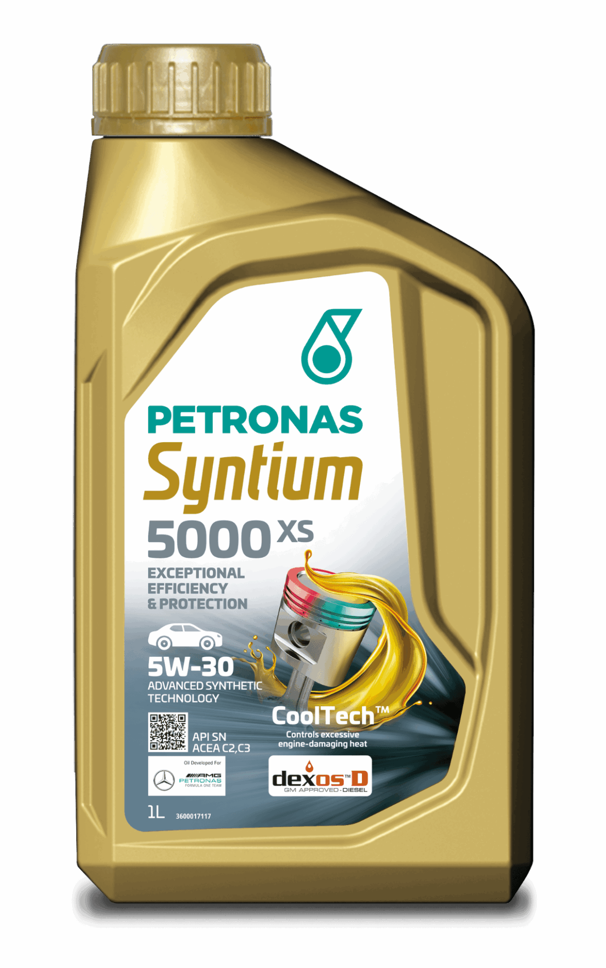 PETRONAS Syntium 5000 XS 5W-30 SN to w pełni syntetyczny środek smarny, opracowany z technologią °CoolTech™, która skutecznie kontroluje ciepło, opierając się utlenianiu i zapobiegając degradacji oleju oraz gromadzeniu się osadów, aby chronić elementy silnika i utrzymywać jego wydajność przez cały okres eksploatacji.