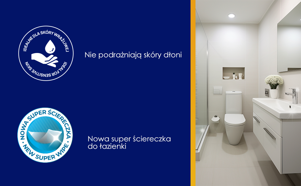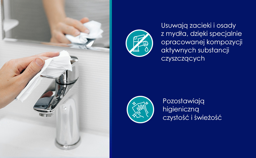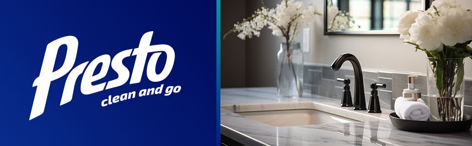 • Skuteczne czyszczenie: Dzięki unikalnej kompozycji aktywnych środków czyszczących, ściereczki Presto do łazienki zapewniają skuteczne usuwanie zacieków i osadu z mydła z umywalek, wanien, płytek i baterii łazienkowych.