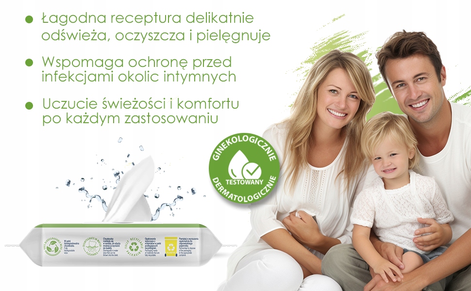 Chusteczka jest w pełni biodegradowalna i rozpada się w wodzie, dzięki czemu można ją po użyciu wyrzucić do toalety. W trosce o środowisko naturalne opakowanie jest wykonane z jednoskładnikowego materiału, dzięki czemu w pełni podlega procesowi recyklingu.