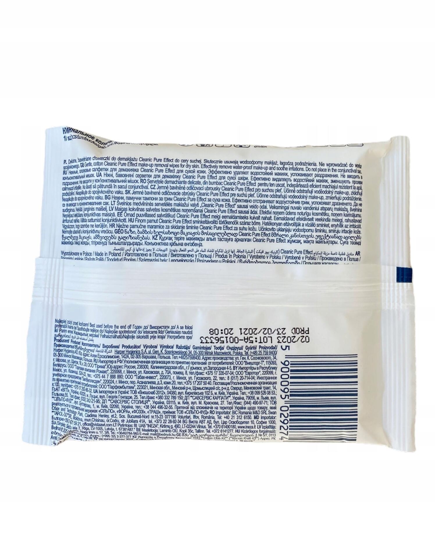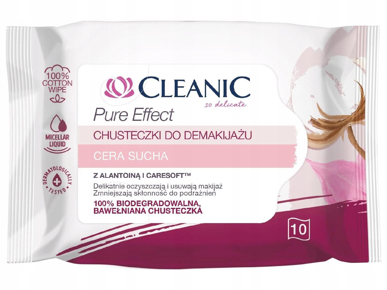 Cleanic Pure Effect Chusteczki do demakijażu do cery suchej 10 sztuk