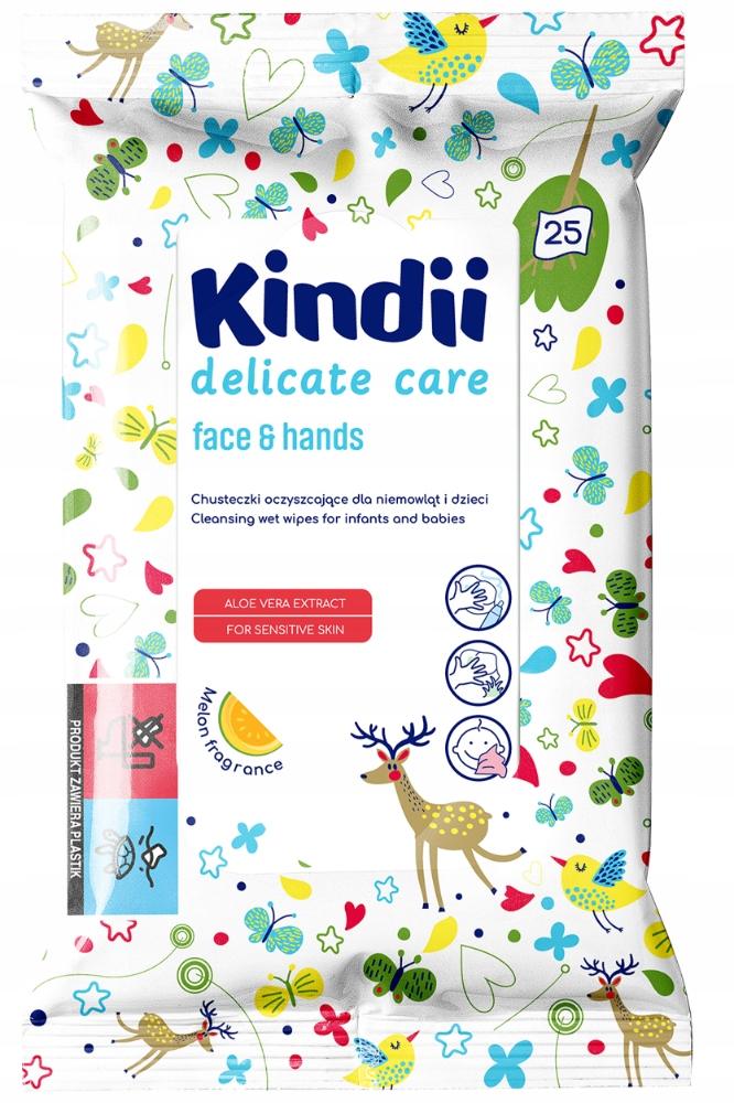 Oczyszczające chusteczki Kindii Delicate Care o delikatnym zapachu melona to doskonały sposób na utrzymanie czystości buzi i rąk Twojego dziecka w czasie podróży, w szkole oraz podczas zabaw na podwórku. Formuła wzbogacona płynem antybakteryjnym pomaga skutecznie uporać się z zabrudzeniami typu: trawa, przybory do pisania czy zabrudzenia spożywcze. Są bezpieczne dla dziecięcej skóry, również wrażliwej. Delikatna formuła produktu zawiera ekstrakt z aloesu, wykazujący działanie ochronne, nawilżające, wspomagające regeneracje naskórka.