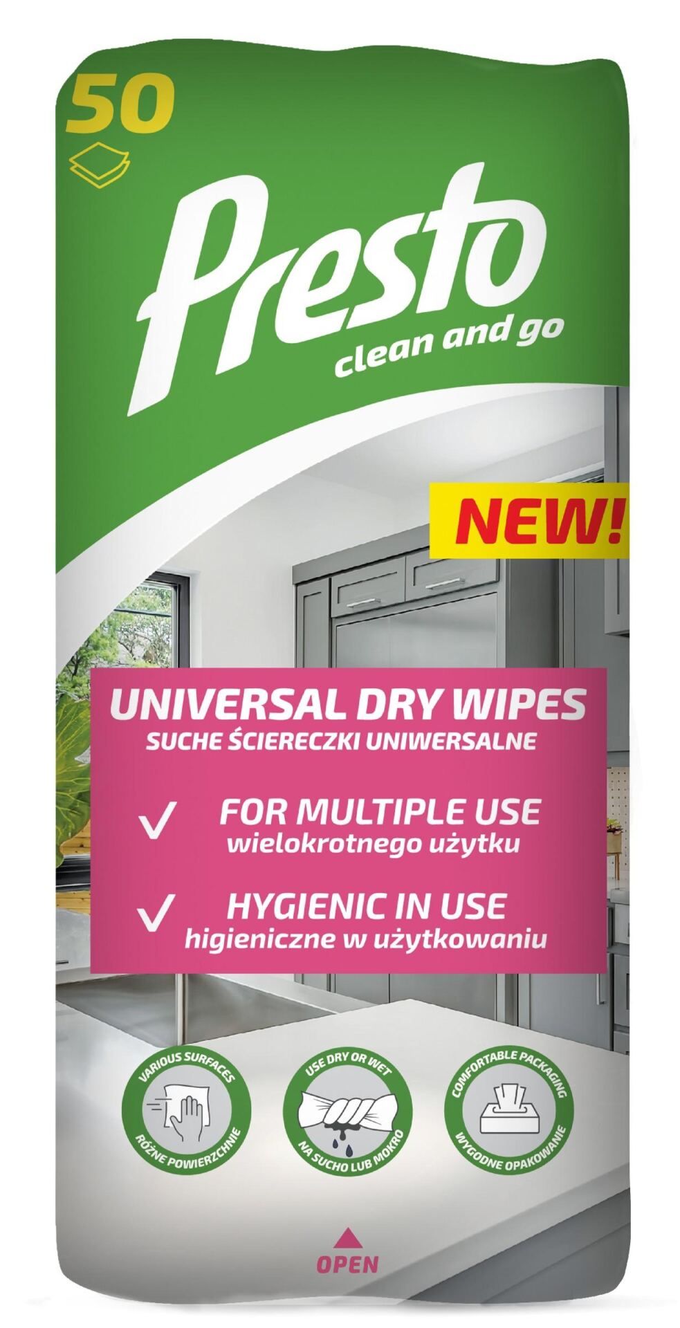 PRESTO ŚCIERECZKI UNIWERSALNE SUCHE, 50 Sztuk