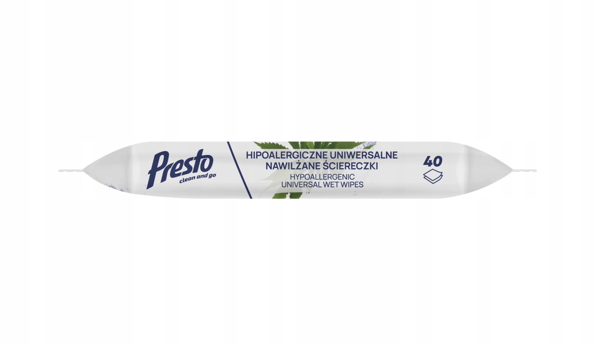 Presto Ściereczki hipoalergiczne uniwersalne nawilżane ściereczki z włóknami konopi 40szt.