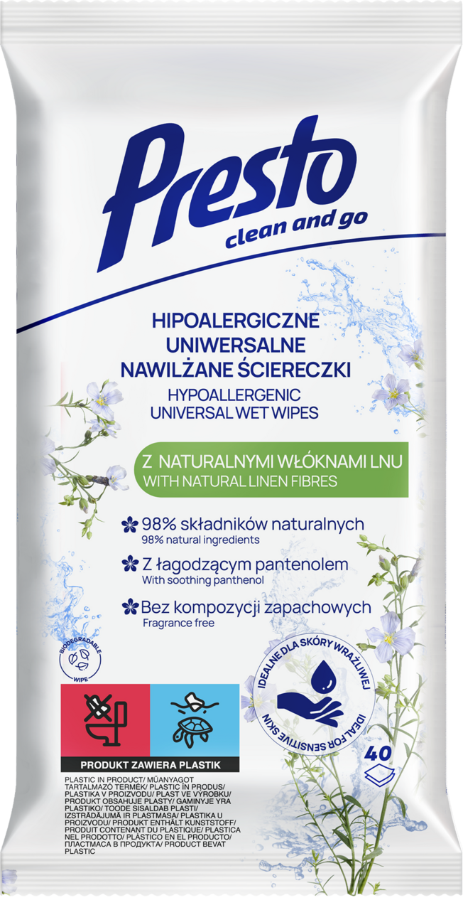 PRESTO ściereczki hipoalergiczne z lnem 40 szt
