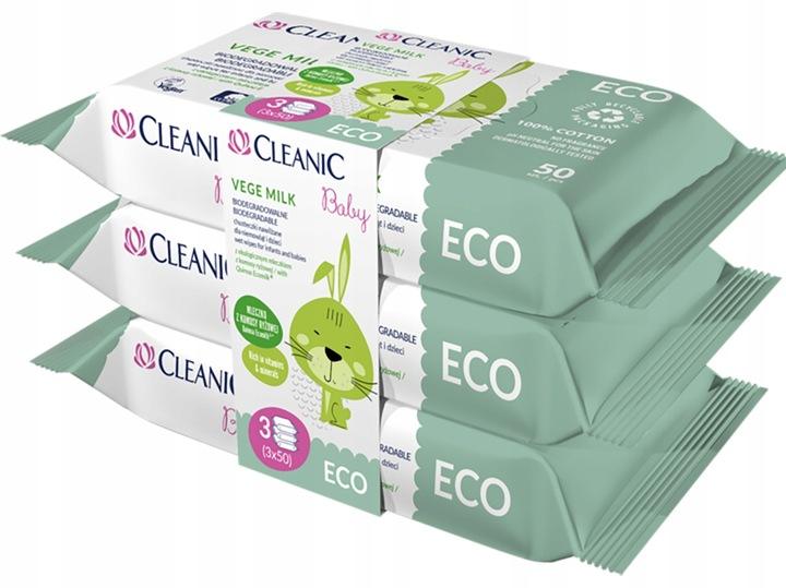 Nawilżane chusteczki Cleanic Baby Eco Vege Milk, 3 x 50 szt.