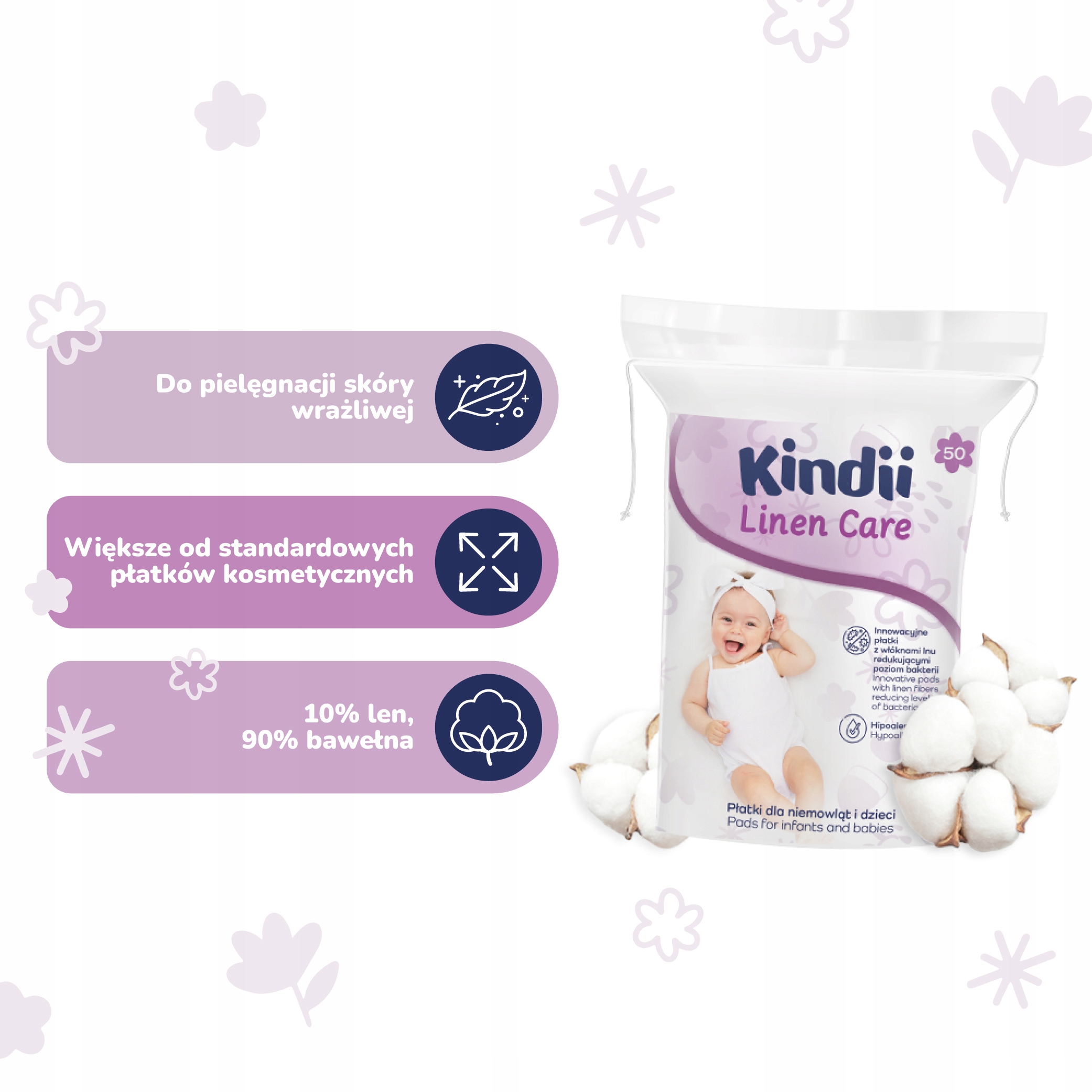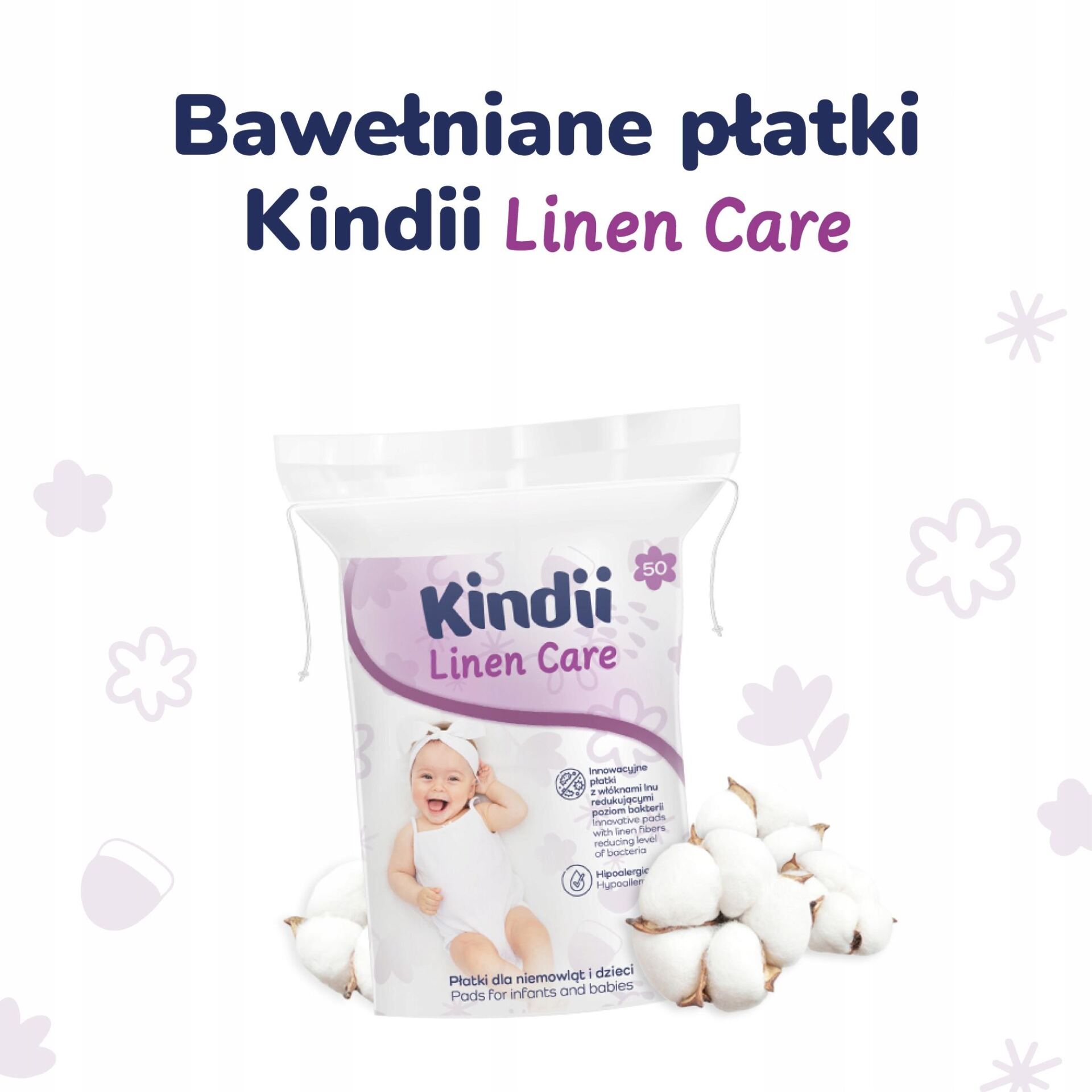 Płatki kosmetyczne dla niemowląt i dzieci Kindii Linen Care, 50 szt.