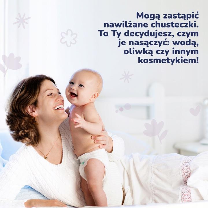 Swobodne użycie: Płatki umożliwiają stosowanie różnych kosmetyków, takich jak woda, krem lub olejek. Możliwość dostosowania do potrzeb dziecka sprawia, że są one niezbędne w codziennej pielęgnacji.