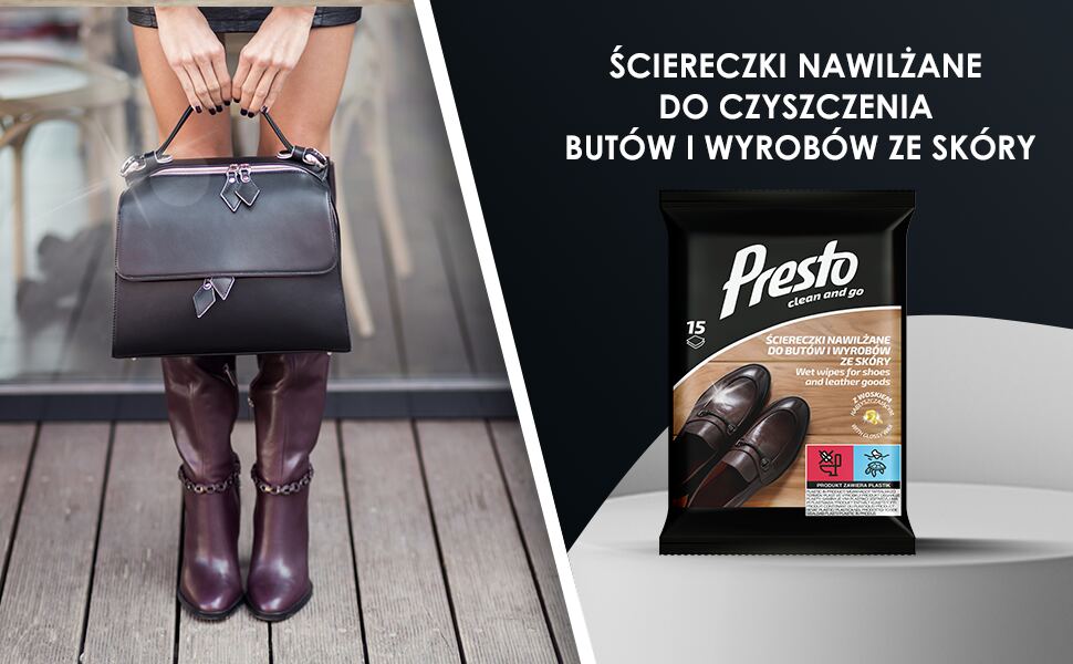 Presto to łatwy i szybki sposób na wyczyszczenie i odświeżenie skórzanego obuwia.