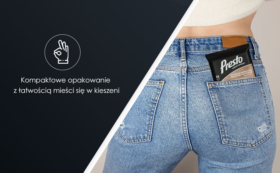 • Praktyczne opakowanie: Kompaktowe opakowanie ściereczek Presto z łatwością zmieści się w kieszeni, plecaku czy torebce, gotowe do użycia w dowolnym miejscu i czasie. Umożliwiają pielęgnację obuwia w każdym miejscu. Wystarczy wyjąć ściereczkę, zamknąć opakowanie i przetrzeć powierzchnię. W przypadku większych zabrudzeń można użyć kilku ściereczek.