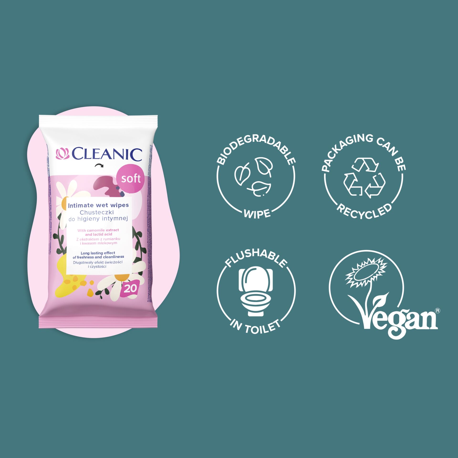 • Chusteczki Cleanic Soft są w pełni biodegradowalne