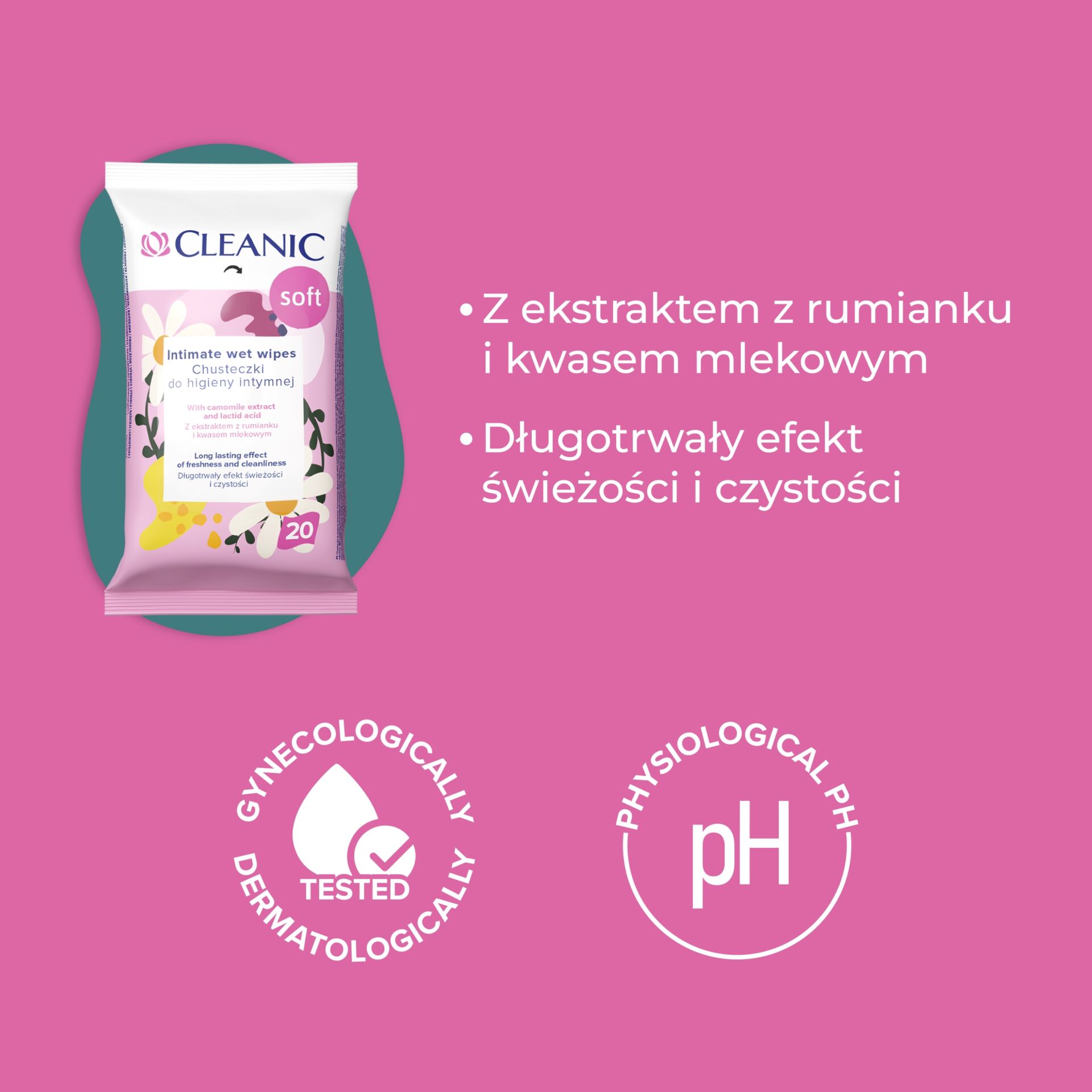 16 x Cleanic Soft Chusteczki do higieny intymnej 20 sztuk