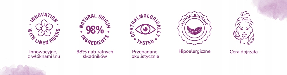 • Naturalne dodatki: Formuła chusteczek została wzbogacona o niacynamid, kwas hialuronowy oraz o polipeptydy roślinne i aminokwasy, które głęboko nawilżają, wygładzają i poprawiają jędrność, elastyczność skóry.