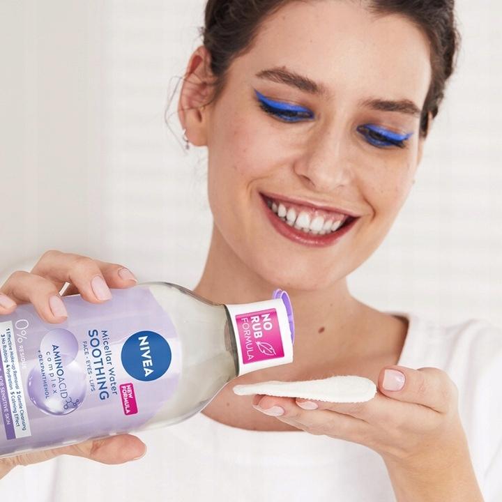 - Łagodząca formuła płynu do demakijażu NIVEA wzbogacona jest kompleksem aminokwasowym, deksantenolem i oczyszczającymi micelami