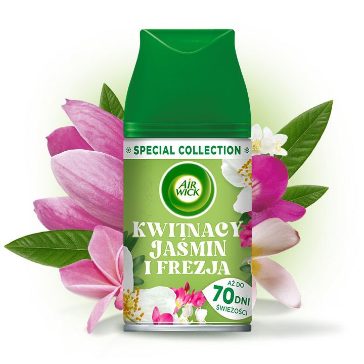 Formuła Air Wick Freshmatic Kwitnący Jaśmin i Frezja została wzbogacona o naturalne olejki eteryczne.