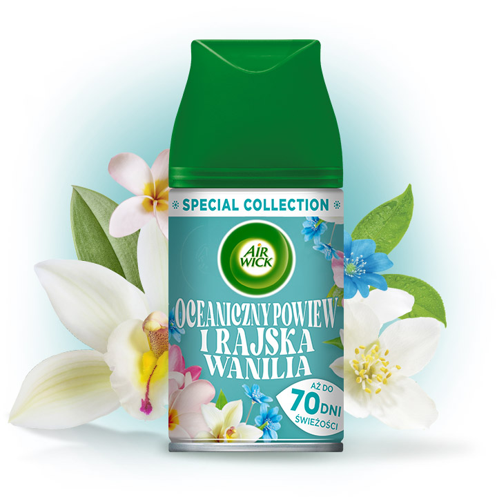 - ORYGINALNY wkład do Automatycznego Odświeżacza Powietrza Freshmatic zapach Oceanicznego Powiewu i Rajskiej Wanilii