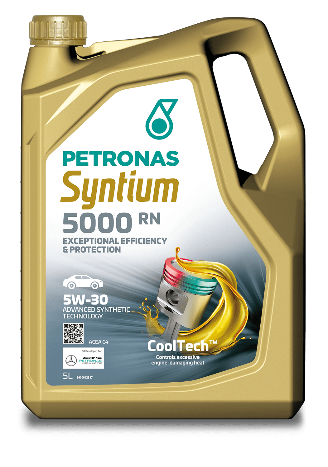 PETRONAS Syntium 5000 RN 5W-30 jest w pełni syntetycznym środkiem olejem silnikowym opracowanym w technologii °CoolTech™ , która skutecznie kontroluje ciepło, zapobiegając utlenianiu oraz degradacji oleju i tworzeniu się osadów, aby chronić części i utrzymać wydajność silnika przez cały okres pomiędzy wymianami oleju.