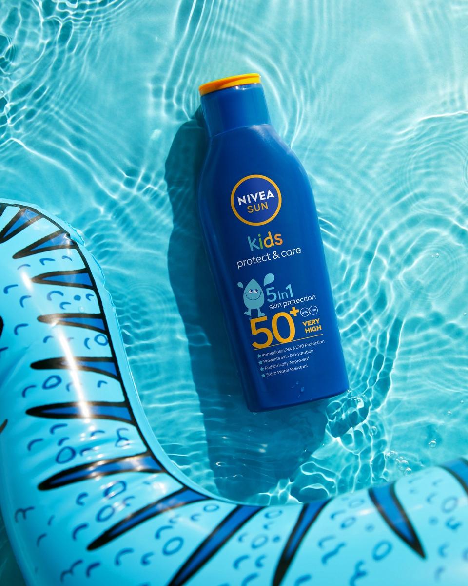 NIVEA SUN Kids Protect & Play Balsam ochronny na słońce dla dzieci SPF 50+ został stworzony specjalnie dla potrzeb delikatnej skóry dziecka. Formuła kremu z filtrem dla dzieci wzmacnia barierę ochronną skóry i umożliwia, dodatkowo pomaga zredukować ryzyko wystąpienia alergii słonecznej. Balsam ochronny dla dzieci zawiera wysoce skuteczny system filtrów UVA/UVB, zapewniający natychmiastową ochronę przed promieniowaniem słonecznym. Skutecznie chroni przed poparzeniem oraz długotrwałym uszkodzeniem skóry na skutek promieniowania słonecznego. Dodatkową zaletą jest długotrwała wodoodporność.