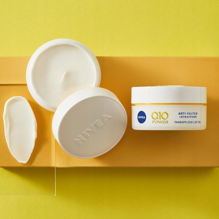 NIVEA® Q10 POWER Przeciwzmarszczkowy + Ujędrnienie Krem na dzień SPF 30 z Naturalnym Koenzymem Q10 i Kreatyną, zawiera IDENTYCZNY jak w skórze Koenzym Q10. Znajduje się on w każdej komórce skóry. Daje jej zastrzyk energii i chroni ją. Z wiekiem jego poziom w skórze zmniejsza się, przez co staje się ona bardziej narażona na oznaki starzenia się. Otrzymany w procesie fermentacji drożdży ten czysty i naturalnej jakości Koenzym Q10 działa w idealnej harmonii z Twoją skórą, naturalnie zwalczając proces jej starzenia się.