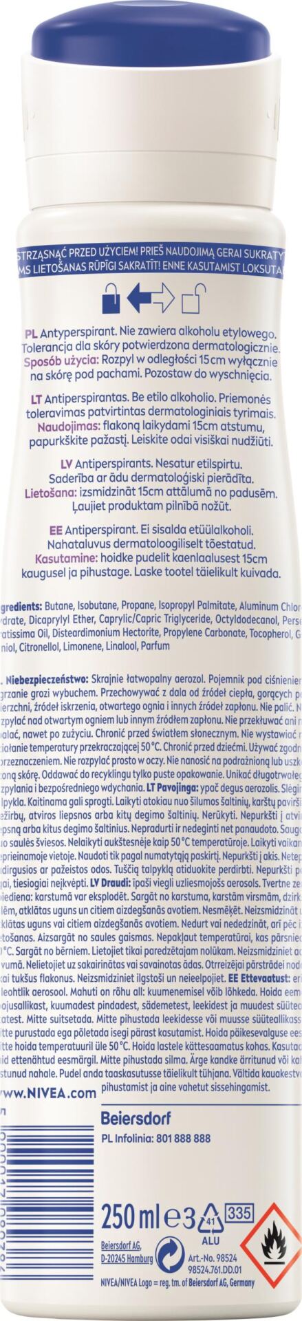 Antyperspirant, na kt贸rym mo偶esz polega膰, z formu艂膮聽INFINIFRESH, kt贸ra aktywnie zwalcza bakterie powoduj膮ce nieprzyjemny zapach. Posiada 艣wie偶y, d艂ugotrwa艂y zapach i zapewnia uczucie 艣wie偶o艣ci sk贸ry, kt贸re utrzymuje si臋 przez ca艂y dzie艅. Obecna w ponad 160 krajach,聽NIVEA聽jest jedn膮 z najwi臋kszych i najbardziej zaufanych marek piel臋gnacyjnych na 艣wiecie z ponad 140-letnim do艣wiadczeniem. Jako lider rynku w globalnej bran偶y piel臋gnacji sk贸ry, nasi naukowcy pracuj膮 intensywnie, aby zapewni膰 wysokiej jako艣ci, zatwierdzone dermatologicznie produkty dostosowane do r贸偶nych typ贸w sk贸ry i potrzeb.