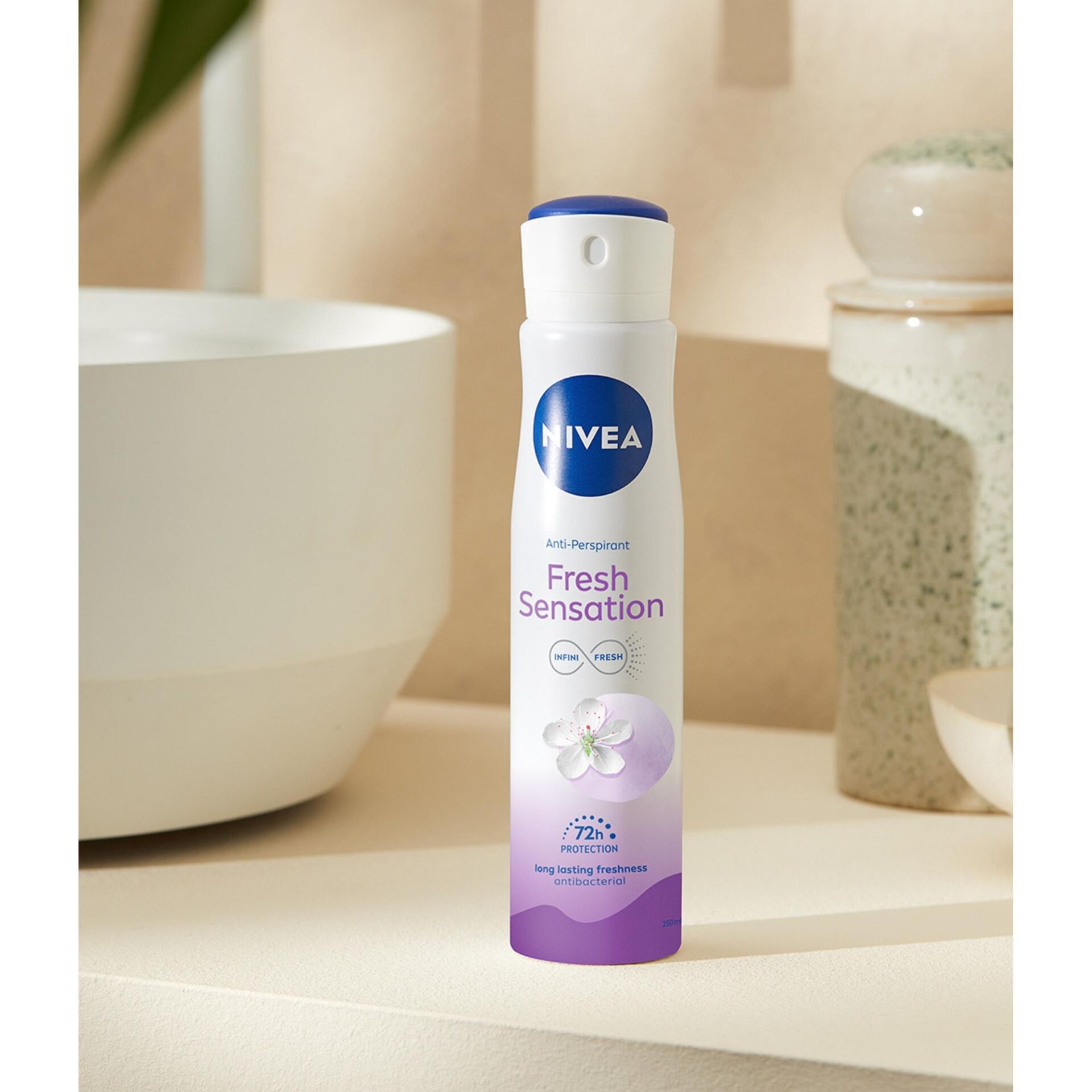 Antyperspirant NIVEA Fresh Sensation聽zapewnia聽72-godzinn膮聽ochron臋 przed potem i nieprzyjemnym zapachem. Zosta艂 stworzony w oparciu o formu艂臋聽INFINIFRESH, kt贸ra aktywnie zwalcza bakterie powoduj膮ce nieprzyjemny zapach. Antyperspirant nie zawiera alkoholu etylowego, a jego tolerancja dla sk贸ry zosta艂a potwierdzona dermatologicznie.