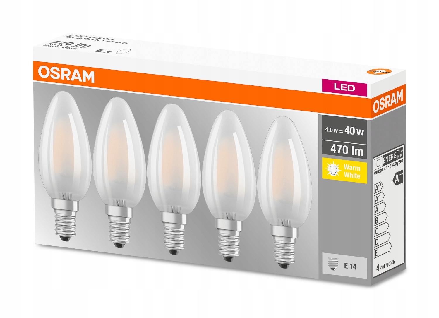 Zestaw 5x Żarówka LED mleczna marki OSRAM, nowoczesne i energooszczędne źródło światła o mocy 4W (odpowiednik 40W) z małym trzonkiem (gwintem) E14, dzięki czemu wymiana żarówki jest bardzo prosta.
