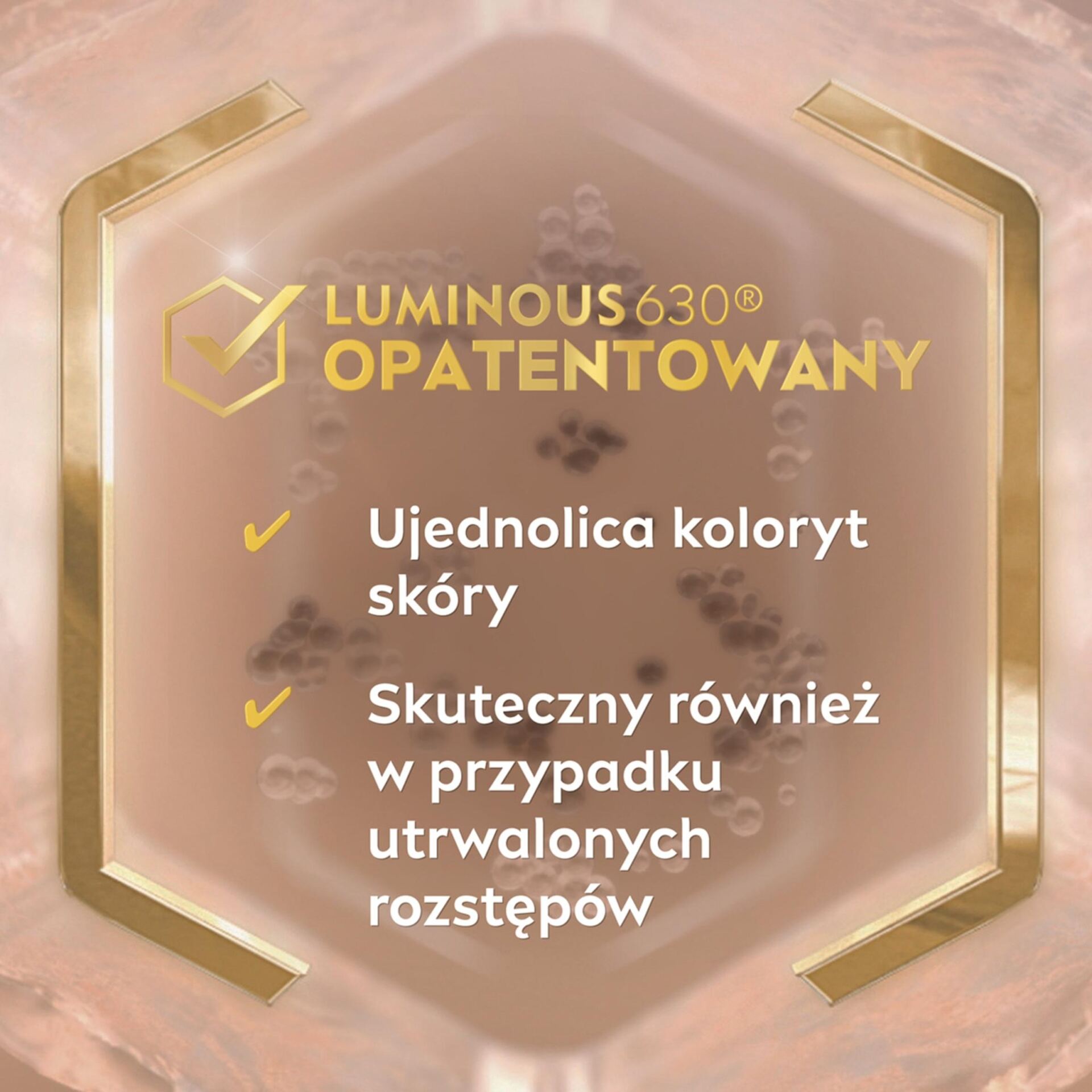 Formuła wyrównująca koloryt skóry zawiera opatentowany składnik aktywny LUMINOUS630®. Ujednolica nierównomierny koloryt skóry, aby znacząco zmniejszyć widoczność rozstępów. Jego regularne stosowanie zapewnia widoczne rezultaty już po dwóch tygodniach. Produkt został wzbogacony mieszanką naturalnych olejków, które sprawiają, że skóra staje się miękka i elastyczna. Przy regularnym stosowaniu nawilża skórę i zapewnia jej zdrowy wygląd.