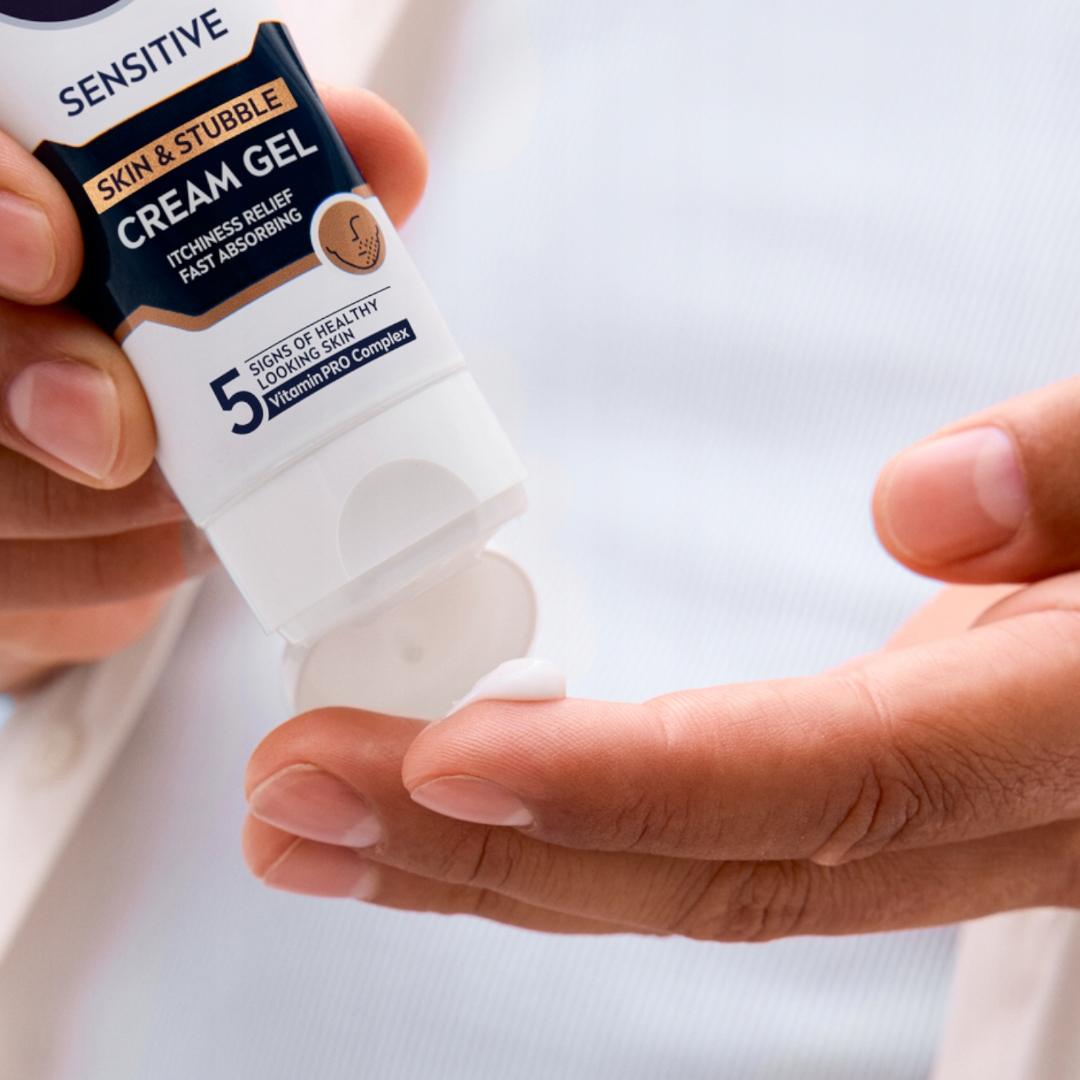 Wypróbuj NIVEA MEN Sensitive Krem-żel do twarzy i 3-dniowego zarostu. Codzienna pielęgnacja dla 5 oznak zdrowego wyglądu skóry twarzy i zarostu: