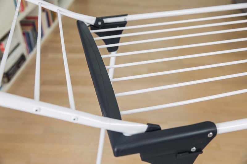 Wyposażona została w grube, aluminiowe linki zapobiegające gnieceniu prania i zapewniające stabilność suszenia.
